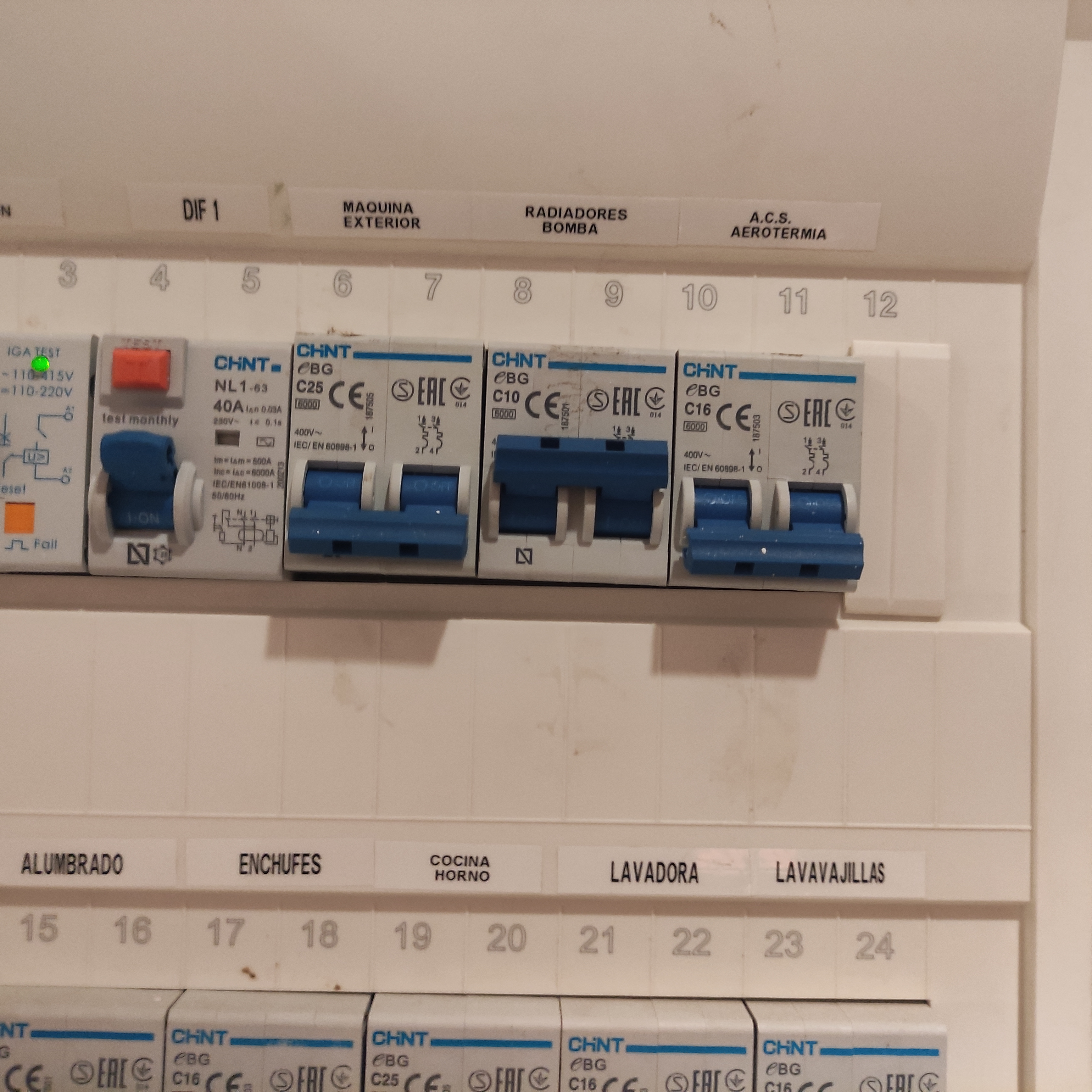 Bajar fusibles MAQUINA EXTERIOR Y ACS AEROTERMIA. IMPORTANTE: SIEMPRE esperar al menos 3 minutos antes de volver a levantarlos.