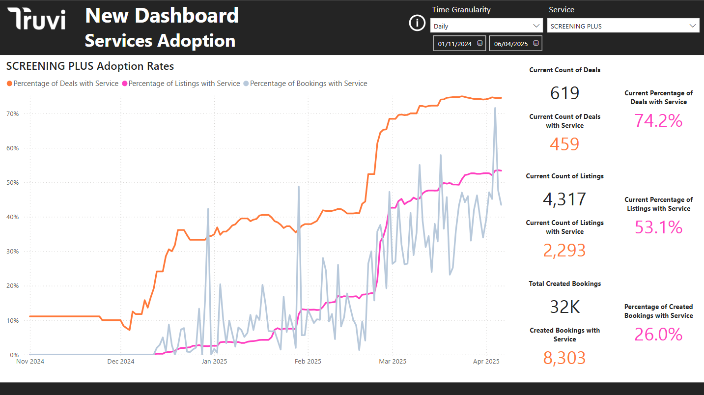- Upgraded Bookings: count of bookings that are not Basic Screening bookings.