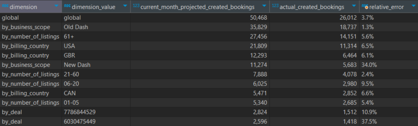 Let’s focus on the first row: this user has 19 active listings, from which 1 has an Upgraded Program and the rest, 18, have Basic Screening. This results into an Upgraded Listings Rate of 5.3% (1 divided by 19). This user has generated a total of 584 bookings, from which 80 have an upgraded program. However, the remaining 504 bookings are Basic Screening-only, which results into an Upgraded Booking Rate of 13.7%.